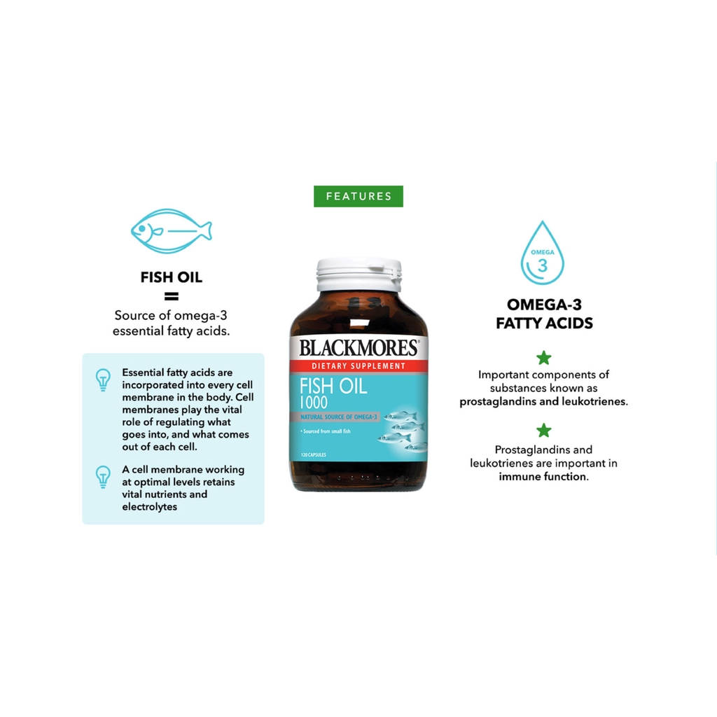 Tidak ditujukan bagi yang alergi seafood. Membantu mengurangi peradangan dan pembengkakan sendi yang terkait dengan osteoarthritis ringan Membantu mendukung kesehatan jantung dan kardiovaskular Membantu mempertahankan fungsi. Blackmores Fish Oil 1000 is a natural source of marine omega-3 fatty acids.